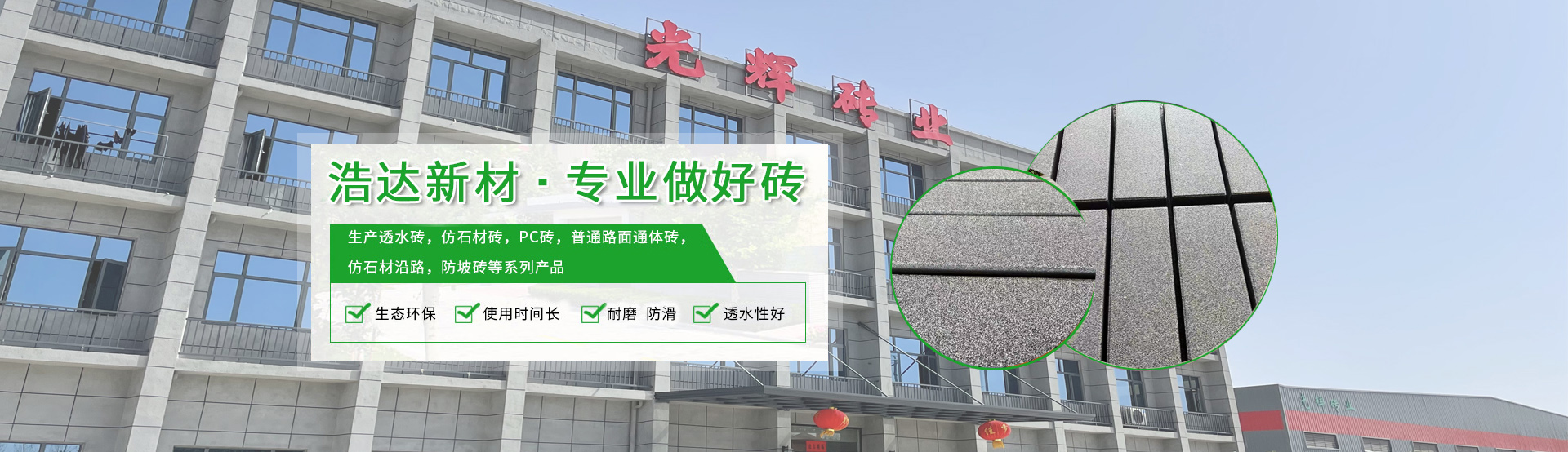 武漢浩達(dá)新型建材股份有限公司《光輝彩磚》成立于1999年,是湖北省內(nèi)早期生產(chǎn)銷售路面磚企業(yè)之一,公司產(chǎn)品齊全,主要生產(chǎn)透水磚,仿石材磚,PC磚,普通路面通體磚,仿石路沿石,護(hù)坡磚等系列產(chǎn)品,歷經(jīng)近20年的發(fā)展,目前分別有武漢,鄂州兩大生產(chǎn)基地,年生產(chǎn)銷售各類路面磚60萬平米,是華中地區(qū)規(guī)模,銷量較大的綜合性路面磚生產(chǎn)企業(yè)。